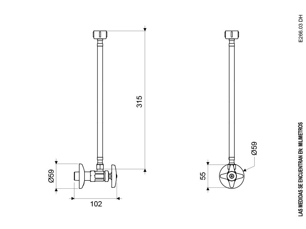 – Cuerpo central de la llave angular fabricado en aleación de cobre y zinc (latón).