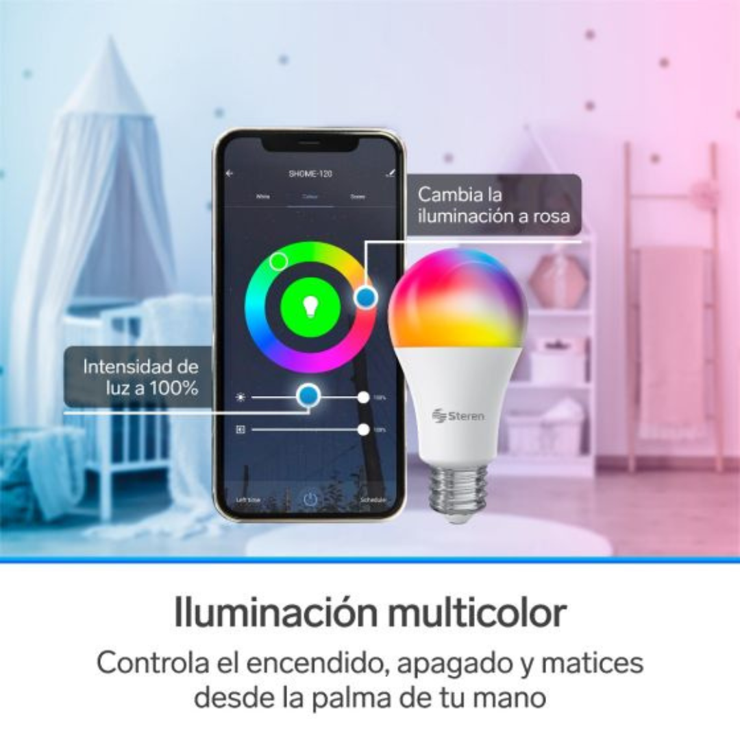 El foco LED Wi-Fi multicolor de 10W de Steren es la solución perfecta para transformar tus espacios con tecnología inteligente. Controla fácilmente la iluminación desde tu smartphone, ajusta el brillo, elige entre millones de colores y crea ambientes únicos para cada ocasión. Compatible con asistentes de voz como Alexa y Google Assistant, este foco combina eficiencia energética, diseño moderno y funcionalidad avanzada para tu hogar o negocio. Descubre cómo simplificar y personalizar tu experiencia de iluminación con este innovador dispositivo.