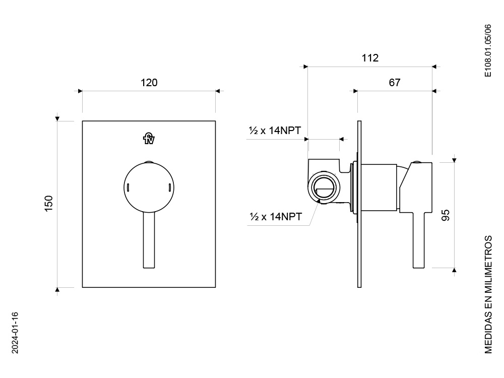 – Mezcladora y manija fabricadas en aleación de cobre y zinc (latón).