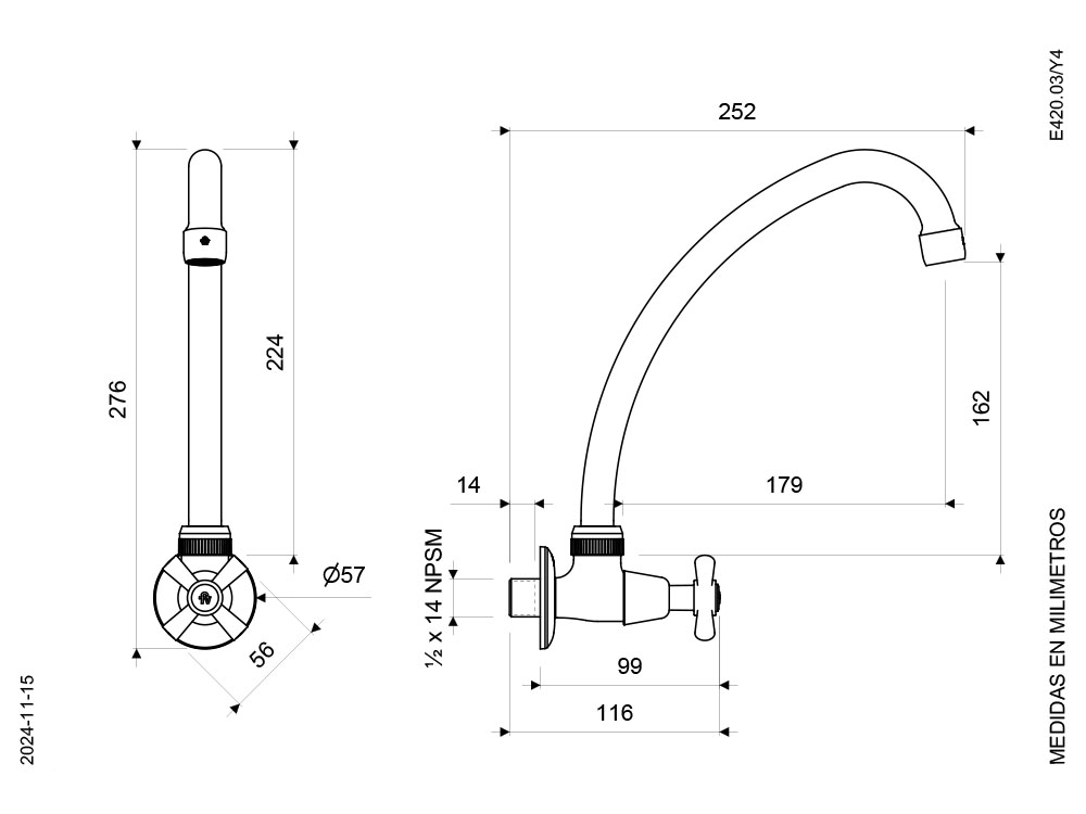 Llave de pared, agua fría para cocina: diseño práctico y funcional, Ideal para optimizar espacios, con instalación en pared para mayor comodidad y limpieza. Fabricada con materiales de alta calidad que garantizan durabilidad y resistencia al uso diario.